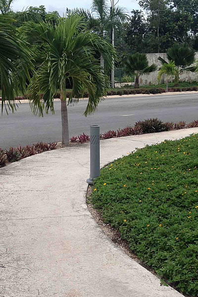 Los postes poseen en su extremo superior tapas plásticas para impedir el ingreso de agua e insectos. Además son huecos en su parte inferior para facilitar la filtración de agua al terrenpo adyacente, si se requiere se puede colocar una tapa de P.R.F.V. en la zona inferior.